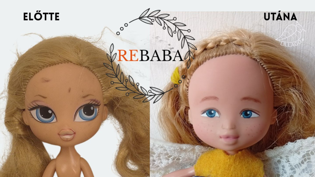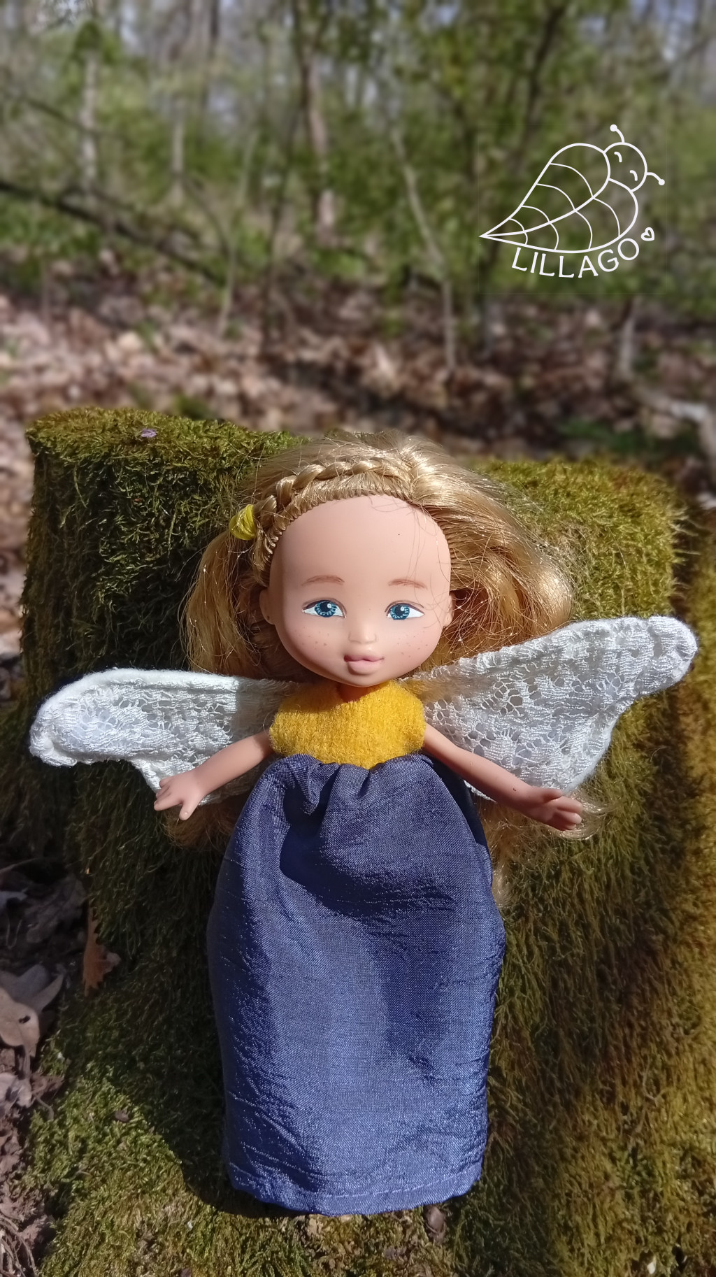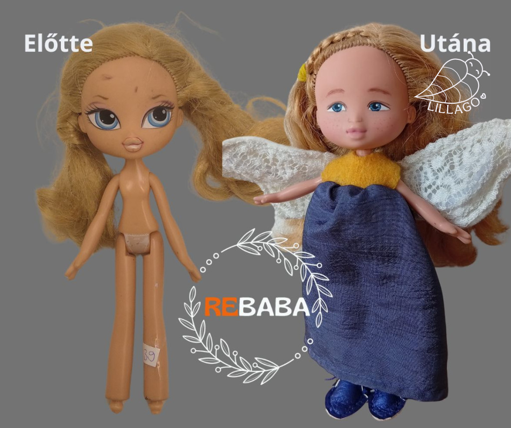 Kb 18 cm magas, dús, hosszú hajú baba.